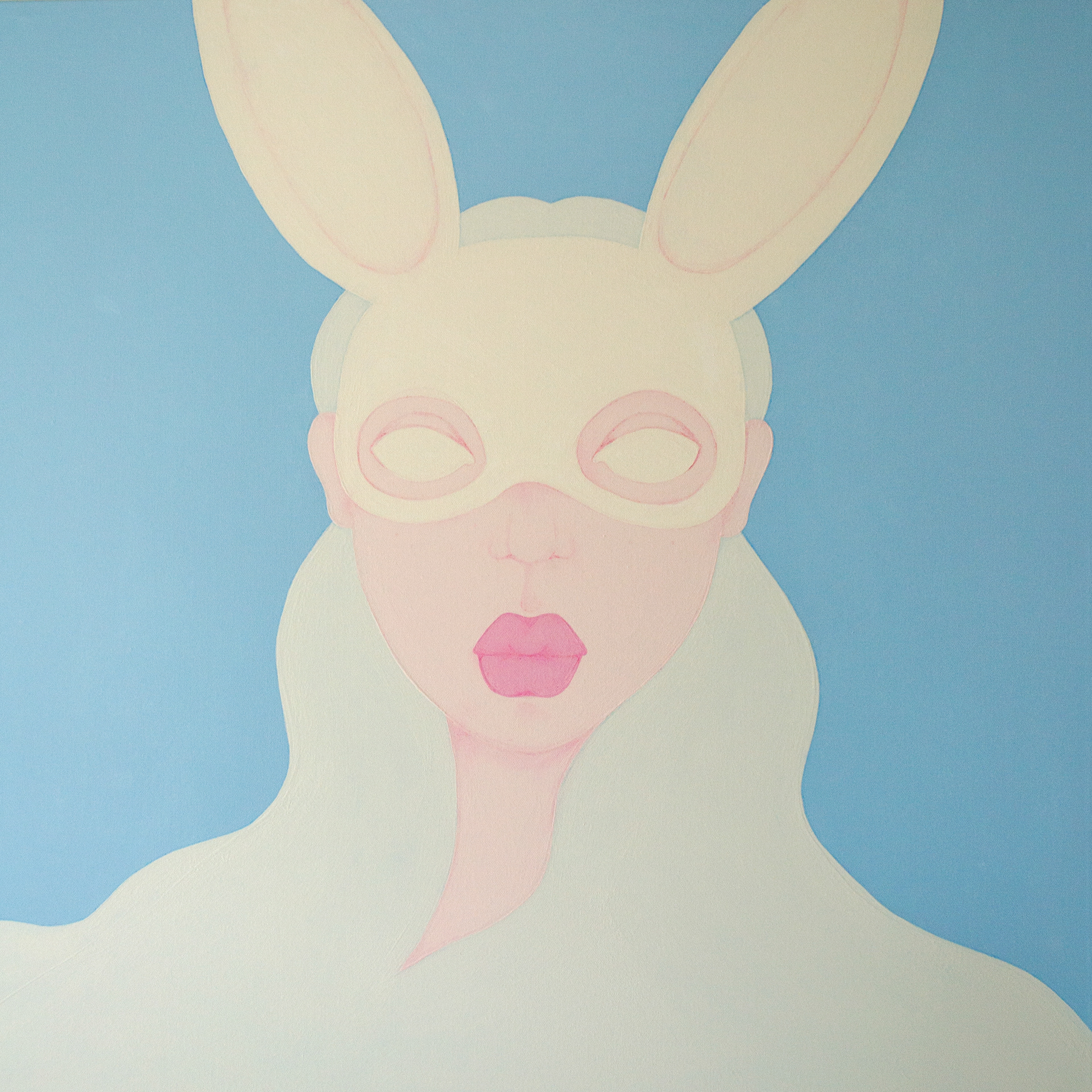 _800 x 800mm, acrylic and pen. With the mask you don't present to others.
